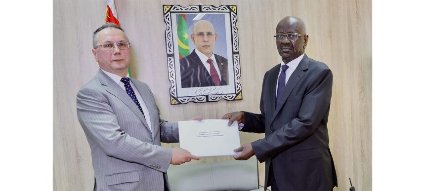 وخلال اللقاء، تسلّم الوزير من السفير الروسي نسخة من أوراق اعتماده بصفته سفيرًا فوق العادة وكامل السلطة لدى الجمهورية الإسلامية الموريتانية، بحضور مدير أوروبا بالمديرية العامة للتعاون الثنائي بوزارة الشؤون الخارجية والتعاون الإفريقي والموريتانيين في الخارج.