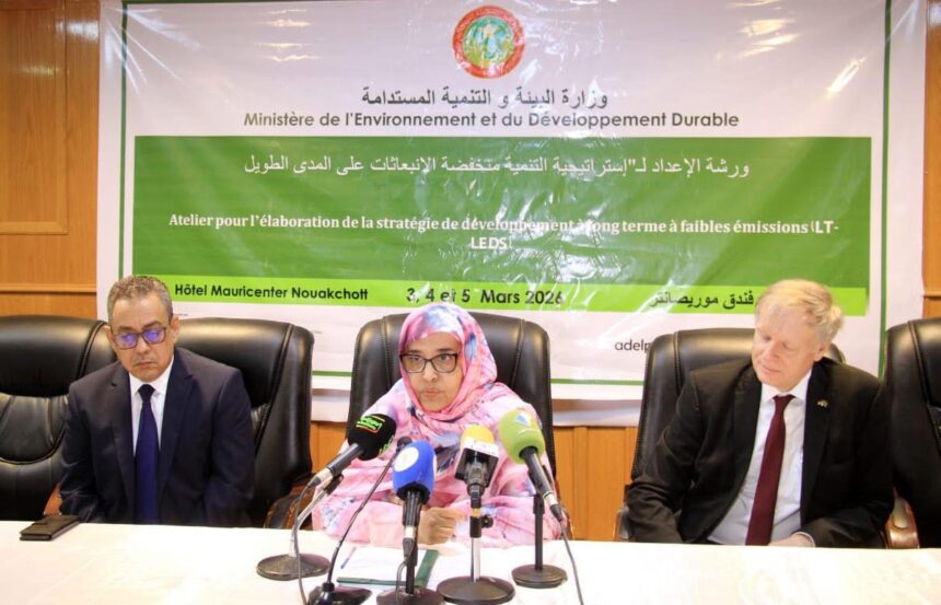 أطلقت وزيرة البيئة والتنمية المستدامة، مسعودة بحام محمد لغظف، اليوم الثلاثاء 3 مارس 2026، ورشة إعداد استراتيجية التنمية طويلة الأمد منخفضة الانبعاثات في أفق 2050، بحضور سفير ألمانيا في موريتانيا، فلوريان رايندل، وعدد من مسؤولي القطاع والشركاء الفنيين.