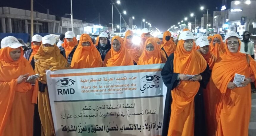 نظمت المنظمة النسائية التابعة لـ حزب تجديد الحركة الديمقراطية “تحدي”، ليلة البارحة، حملة ميدانية للتحسيس بأهداف الحزب وبرنامجه السياسي في مقاطعات نواكشوط الجنوبية.